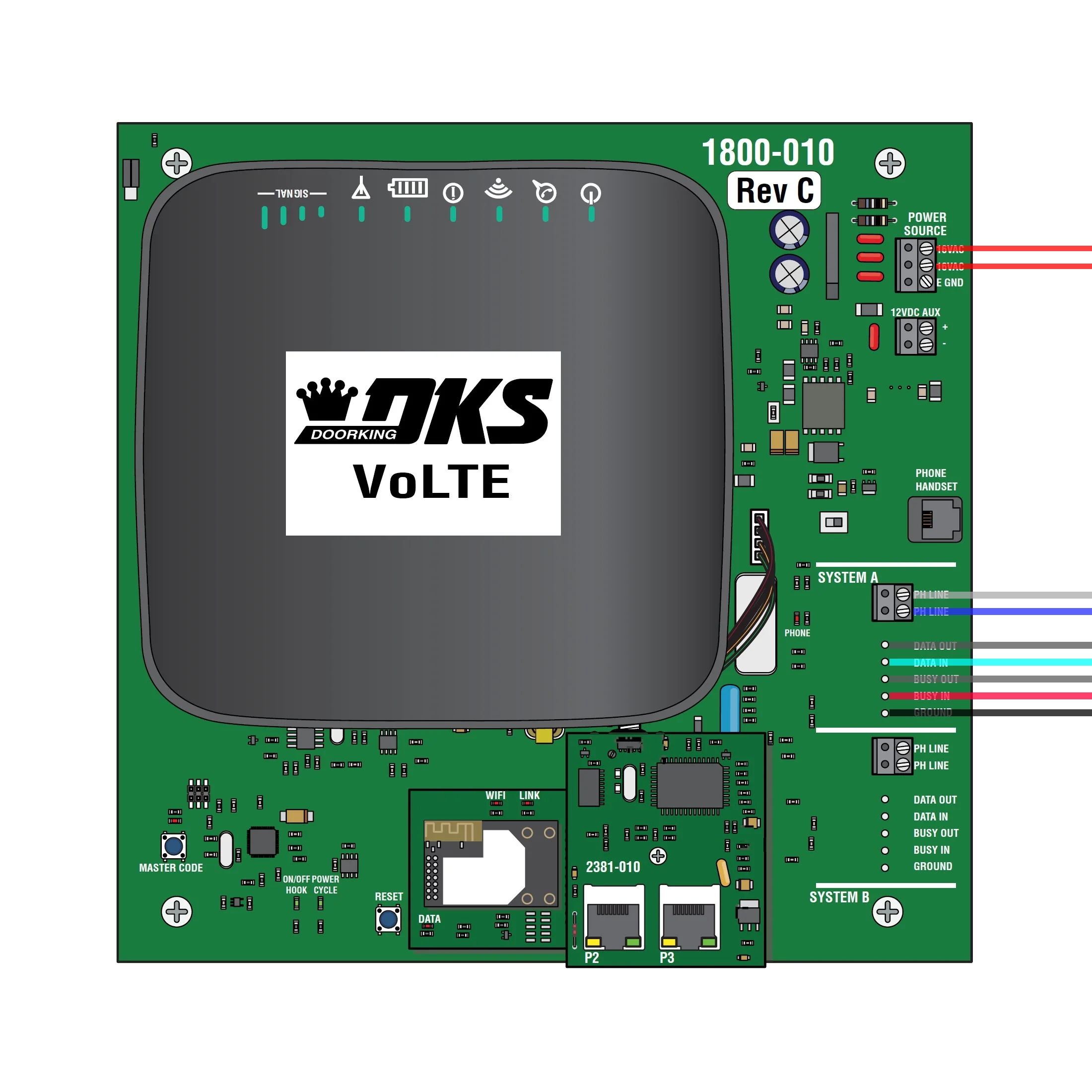 Looking at the other terminals within the box, we saw the PH LINE phone connectors for each system. This was promising, since Frank’s existing intercom system used DTMF signals to open the gate back when it was working.