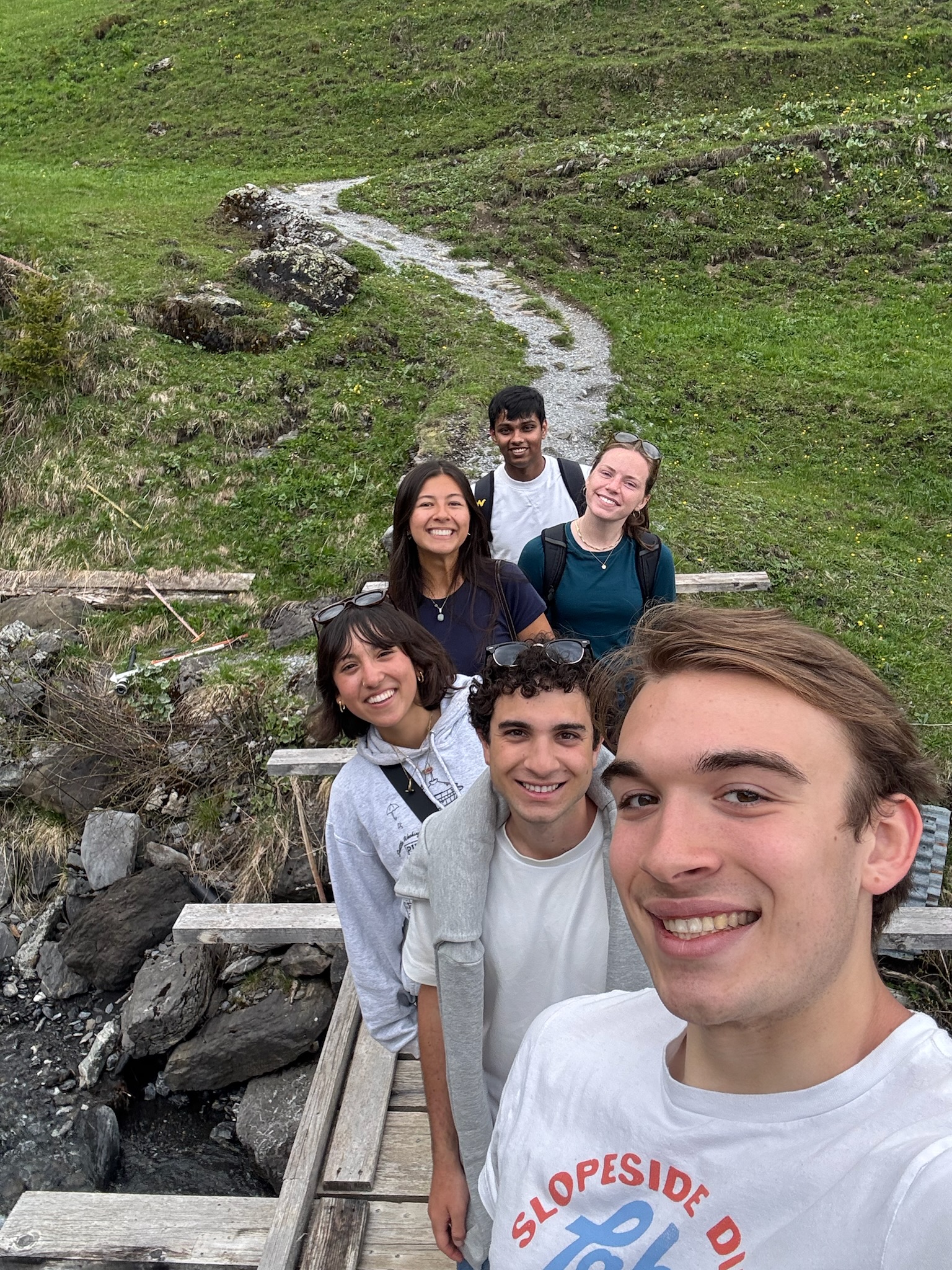 We eventually ended up in Mürren, got some souvenirs, then went on a nice long hike. Eventually Avery and Aditya left to go back but the rest of us continued and finished it even with some crazy terrain! We somehow lost the path and ended up having to cross a ski slope sideways and go through absolute mud pits, but we had fun and made it back.