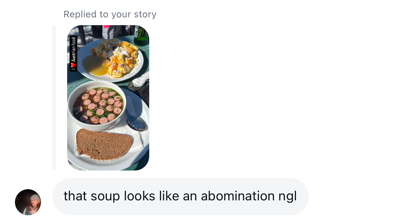 Christina was not impressed by the soup, something that is made very funny by the fact that she’s Austrian!